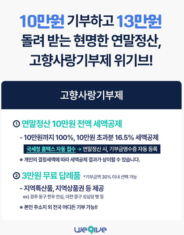 - 합계 세액공제 13만 원 + 약 3만 원 상당 답례품
