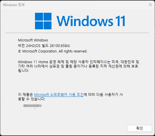 - Win + R을 눌러 실행 창에 winver 입력 → 버전과 OS 빌드 확인