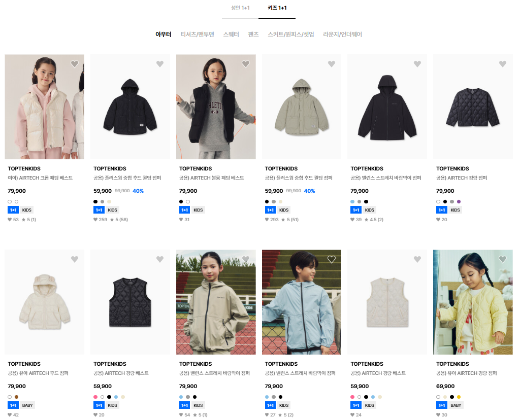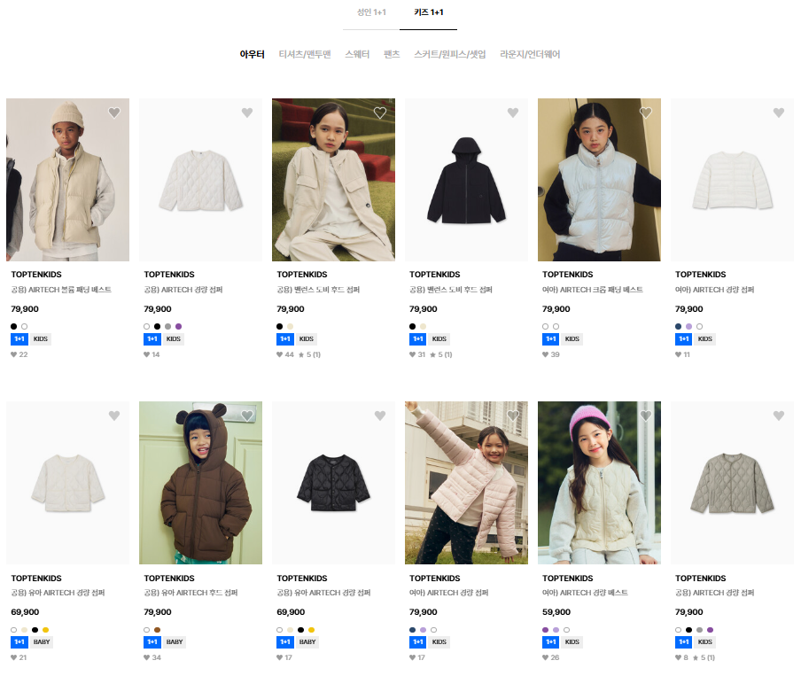 일부 품목에는 1+1 혜택이 동일하게 적용된다. 키즈 라인은 가족 단위 소비자를 겨냥해 ‘패밀리룩’ 콘셉트를 강화했다.