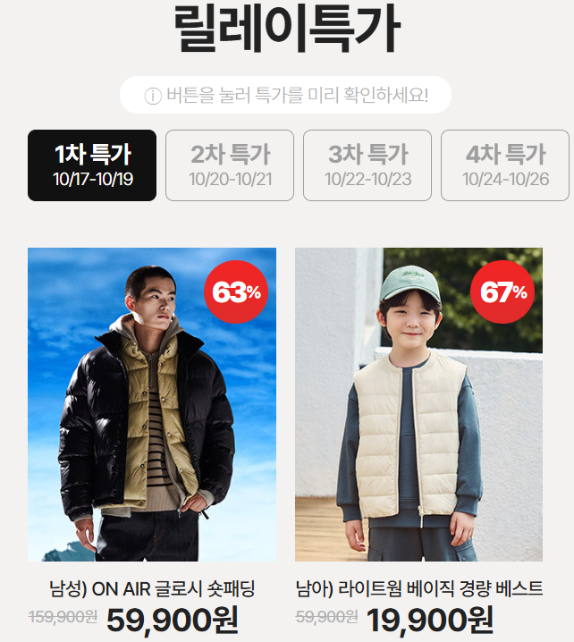 특히 발열내의, 경량 패딩 등 시즌성 제품은 조기 품절될 가능성이 높으므로, 행사 초기에 구매하는 것이 유리하다.