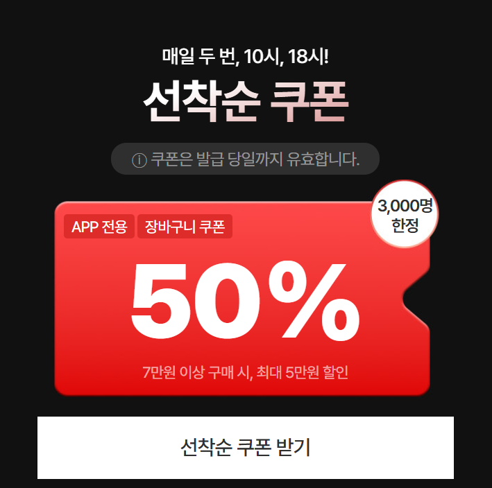 방문자는 구매 전 앱 로그인 및 푸시 알림을 설정해두면 추가 혜택을 받을 수 있다.