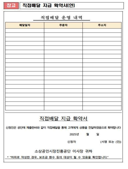 - 확인지급: 택배사·퀵서비스 이용 사업자는 운송장·영수증 등 증빙서류 제출 후 지급 받는다.