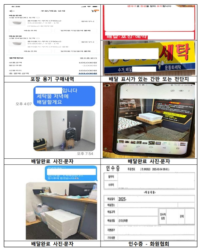 - 배달앱 이용 내역 또는 택배 영수증·운송장
