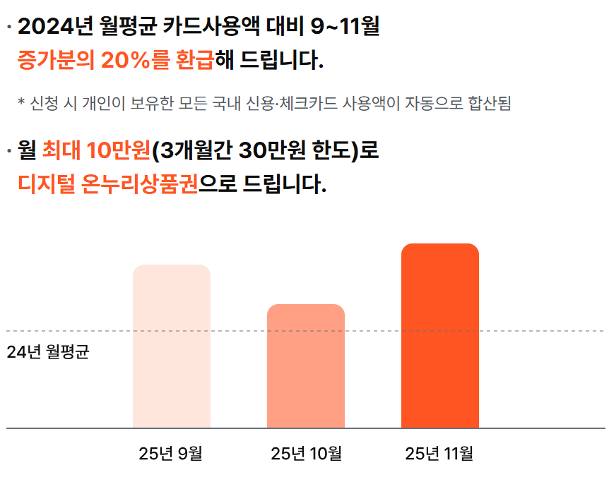 - 기준: 2024년 월평균 카드 사용액 대비 증가분의 20%