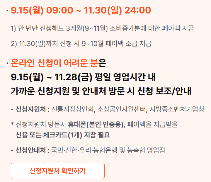 | 롯데카드 | 롯데카드 앱 → 공지사항 → 정부상생페이백 신청 | PC 신청 불가 |