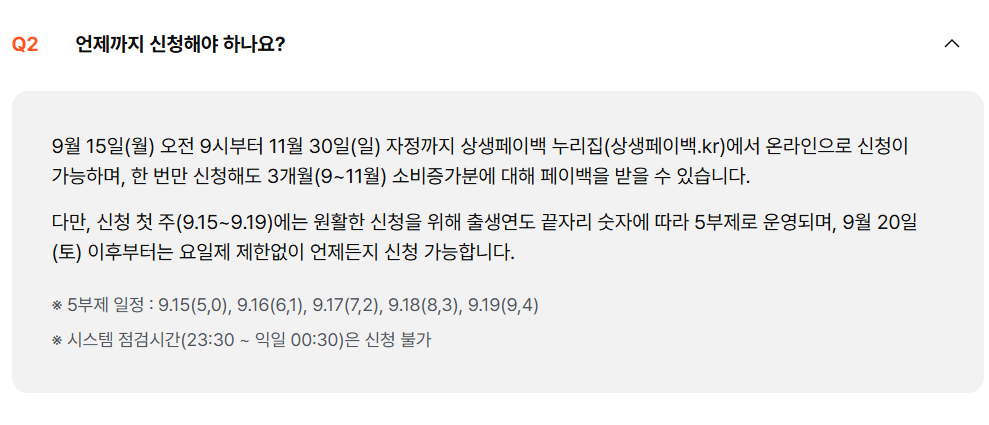 첫 주(9월 15일~19일)는 출생연도 끝자리 기준으로 5부제가 적용됩니다. 이후 기간에는 자유 신청이 가능합니다.