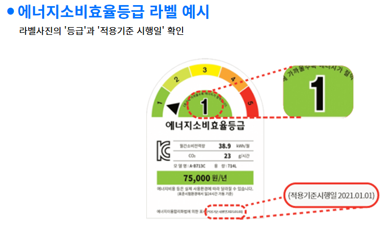 - 제품별 효율등급은 한국에너지공단 ‘효율등급표시제’에서 확인 가능