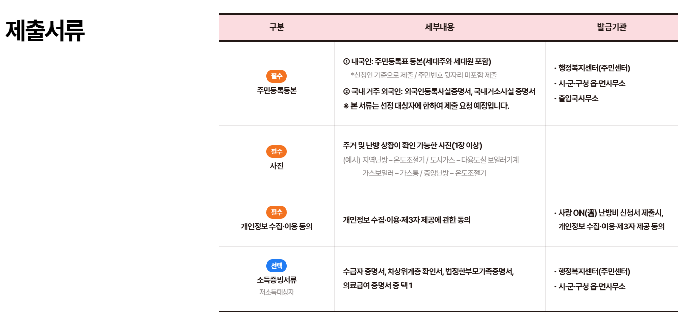 거주지의 난방방식이 지역난방, 개별난방, 전기난방 등 어떤 형태든 신청이 가능합니다.