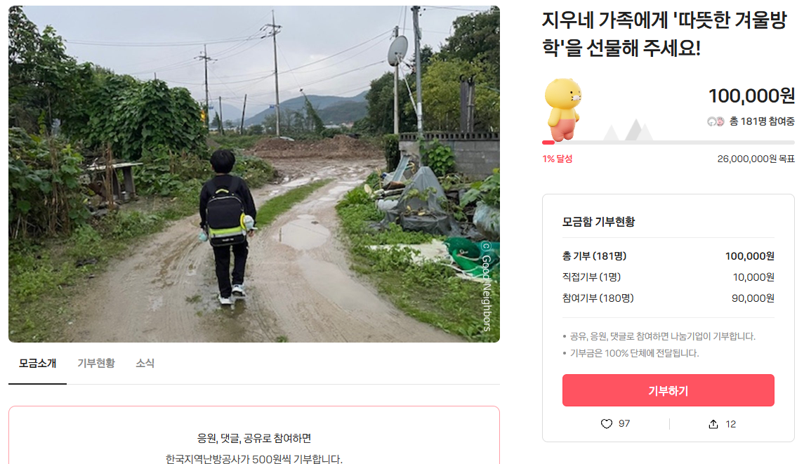 ‘온기(溫氣)를 나누다’라는 의미로, 난방비 부담이 큰 취약계층에게 실제 생활에 도움이 되는 지원을 제공합니다.
