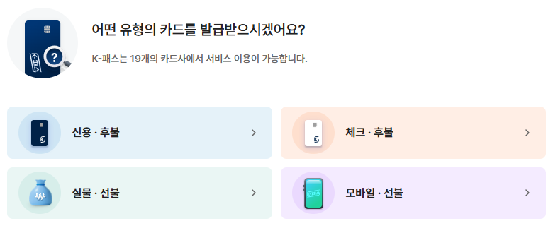 - 교통카드 기능 탑재형 카드 신청 (신용/체크 선택)