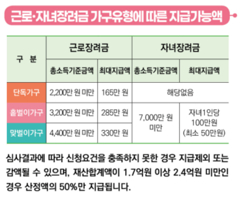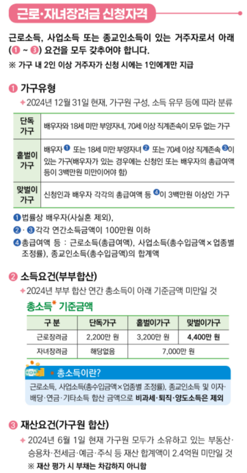 - 💰 지급액: 근로장려금 최대 330만 원, 자녀장려금 자녀당 최대 100만 원