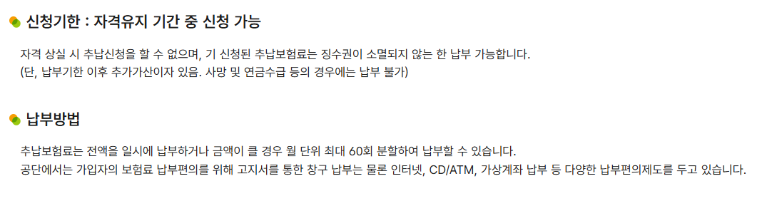 - 추납 대상이 되는 기간은 보험료를 내지 않았던 공백 기간 중, 법에서 허용한 구간에 한함