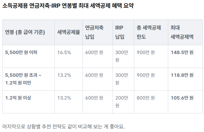 - 사적 연금(연금저축·연금보험 등)과는 공제 항목이 다르므로, 헷갈리지 않도록 주의