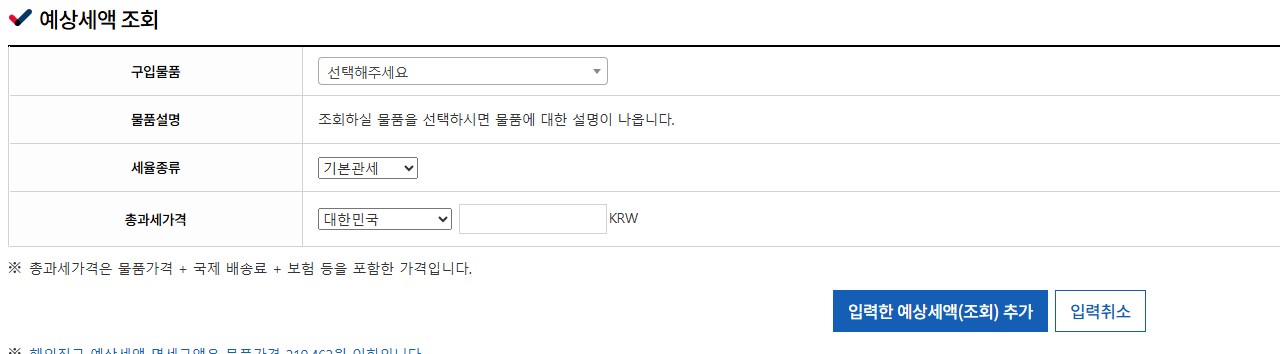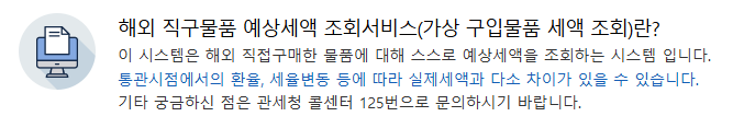 관세청 해외직구물품 예상세액 조회시스템에서 구입 전 미리 세금을 확인해 보는 것이 가장 확실합니다.