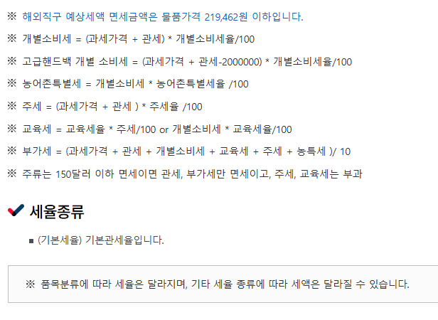 구매 전에 관부가세를 한 번 점검해 보는 것이 안전합니다.