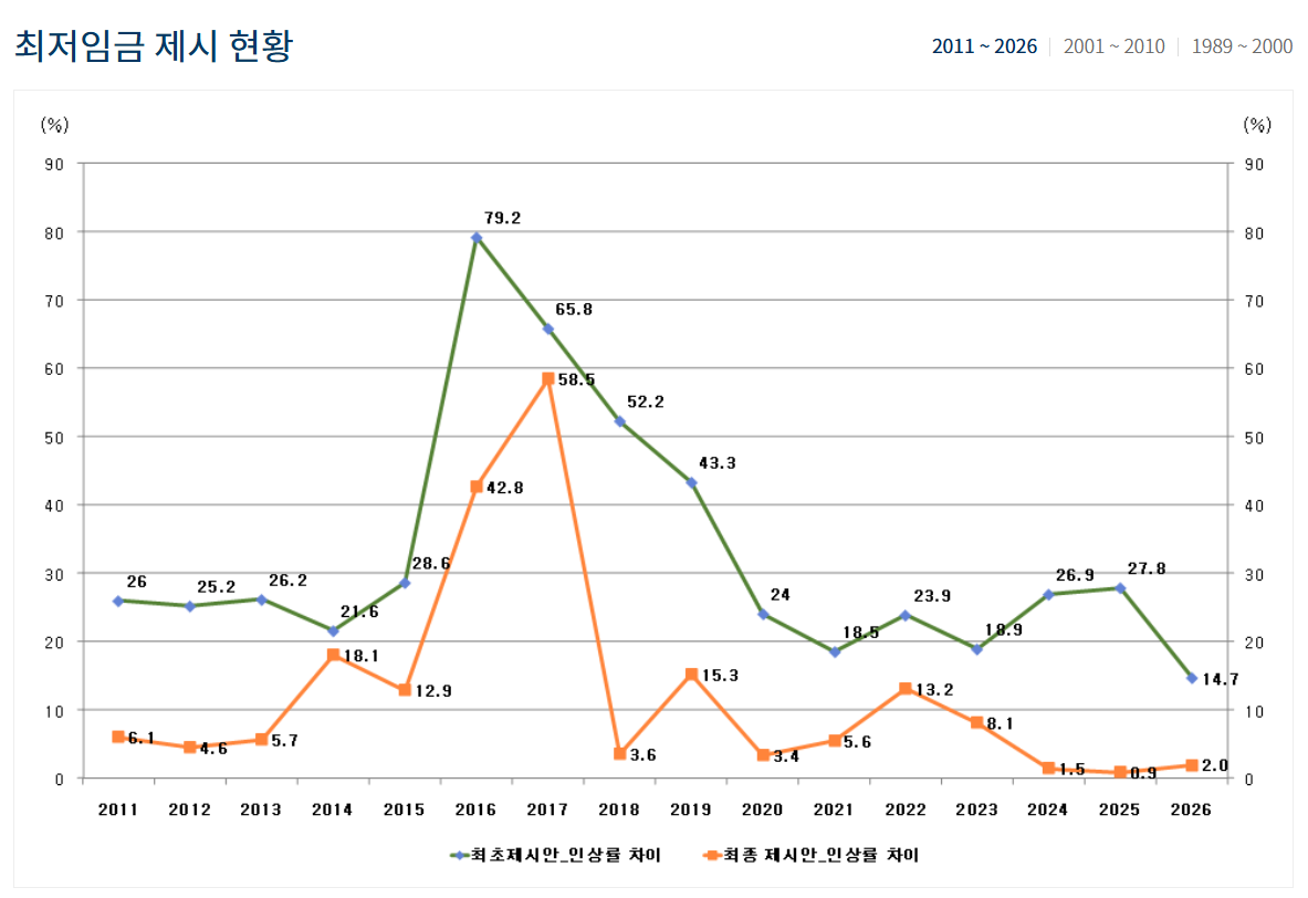 2. 2025년 최저임금과 2026년 최저임금 비교